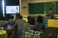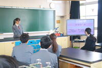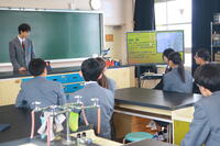 次に、授業体験が行われました。例年教員が担当していましたが、今回は1年生が新入生に向けて授業を行いました。この日に向けて1年生はグループごとに授業のねらいや学習内容を考え、準備を重ねてきました。いろいろと苦労がありましたが、試行錯誤しながら努力してきた甲斐もあり、しっかりと授業を行うことができました。声かけや、新入生からの質問に丁寧に答える1年生の姿に教員一同、成長を感じました。