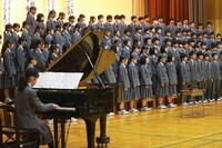 第2部では体育館に会場を移し、学年五訓の発表や学年合唱の披露などを行いました。2年生の一生懸命な態度や声には、大人へと一歩踏み出していく決意がしっかりと込められていました。第2部からは1年生も参観し、そのような先輩の姿を目に焼き付けていました。体育館はとても寒かったですが、それ以上に心温まる素敵なつどいとなりました。