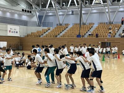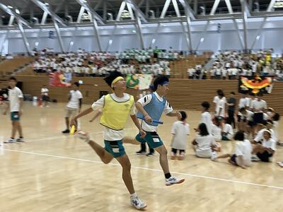 令和7年度体育祭 投稿: 社 (16:31) カテゴリー: 学校行事 10月1日、県営体育館で体育祭を行いました。この日のために、体育委員を中心に計画や準備を行い、当日は、生徒役員として、他の委員会の協力も得ながら、全員で作り上げた体育祭となりました。競技の部では、青組が優勝、赤組が次勝。応援の部では、青組が最優秀賞、赤組が優秀賞。応援幕の部では、赤組が最優秀賞、黒組が優秀賞でした。どの色も競技に応援にと全力で取り組む姿は、まさに「青春(アオハル)」でした。 Tweet -