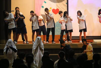 10月3日、文化祭が行われました。模擬店や展示の仕事で盛り上げた人、ステージで自分の特技を精一杯発表した人、観客席から大きな声でエールを送った人、裏方でさまざまな準備をしていた人、全ての生徒が自分の個性を精一杯出し切った文化祭となりました。学校祭テーマのように仲間と共に青春の鼓動を感じることができました。