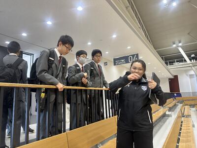10月30日に1年生は、校外学習を行いました。午前中は、総合のテーマ別(スポーツ・福祉・環境・観光・職業など)に分かれて、話を聞いたり、施設や建物を見学したりしました。午後は、クラスで班別に、福井駅を出発し、福井駅前周辺から社中学校周辺の、さまざまな「福井のいいところ」を探しながら、社中学校に帰ってきました。実際に、目で見たり、聞いたりすることで、新たな発見が多い1日でした。
